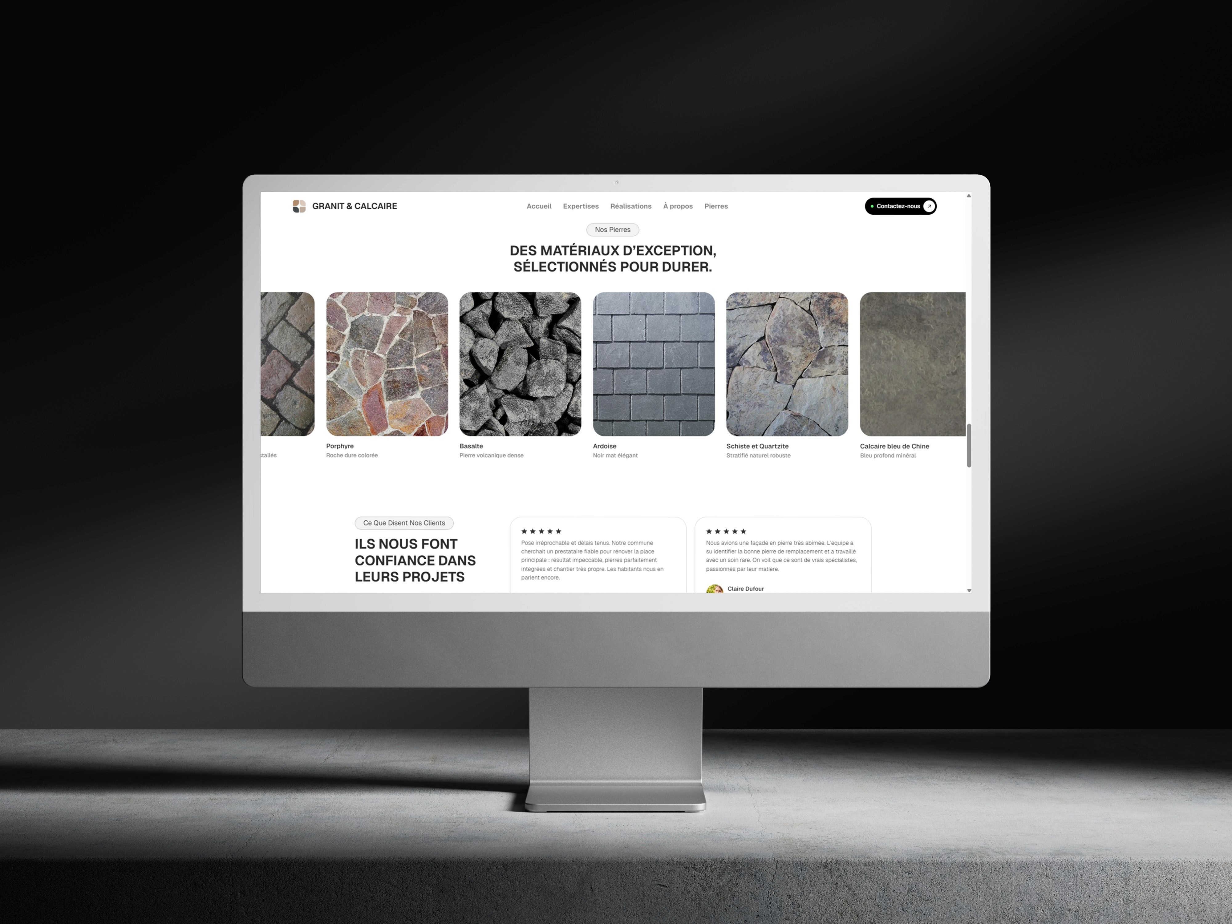 Le résultat : un univers premium qui positionne Granit & Calcaire comme un acteur fiable, moderne et techniquement expert, tout en restant fidèle à ses racines artisanales.